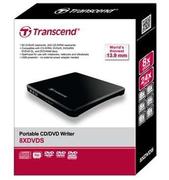 Устройство совместимо с операционными системами Windows 7, Windows Vista, XP и Mac OS, обеспечивает максимальную скорость записи 8х для DVD-дисков и 24х для CD-дисков. Цена ультратонкого DVD-привода от Transcend составляет 59 $.